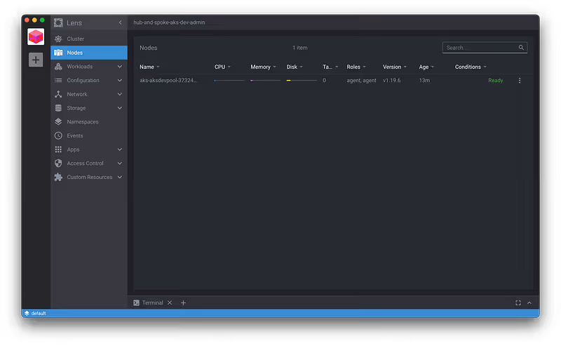 At this step we have an operational AKS cluster with an ingress controller that allow application exposure with a private load balancer.