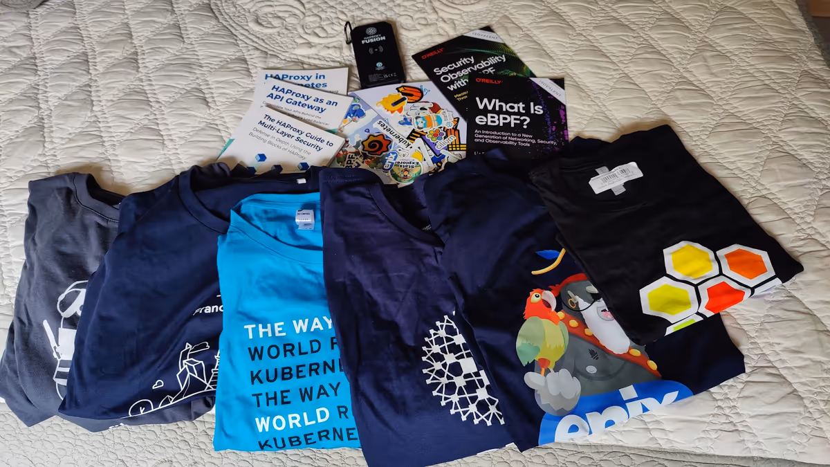 Enfin, une conf tech sans goodies ce n'est pas une conf tech. Autant je reste mesuré et ne prends que quelques stickers pour les enfants en tant normal, autant cette fois-ci j'ai craqué.