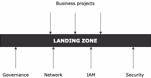 The landing zone is an enterprise-level infrastructure layer, i.e. it is the interface between cross-functional functions (governance, security, access management, network, etc.) and project teams.