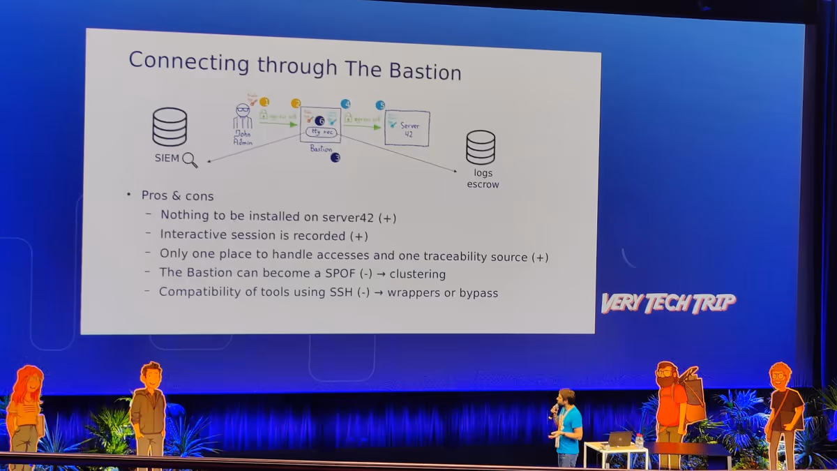 Stéphane Lesimple d'OVHcloud nous présente la solution de bastion "The Bastion" made in OVHcloud, produit maison Open Source pour accéder à l'ensemble des serveurs que les admins gèrent.