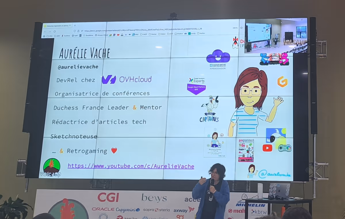 Aurélie Vache de la société OVHCloud, un peu stressée pour sa première keynote, nous explique comment, après avoir abandonné ses passions d'ados en début de carrière, a sur les reprendre pendant le COVID, en prenant du temps pour elle pour "gribouiller" pendant cette période un peu spéciale.